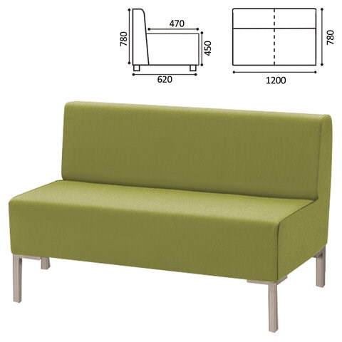 Диван мягкий двухместный "Хост" М-43, 1200х620х780 мм, без подлокотников, экокожа, светло-зеленый