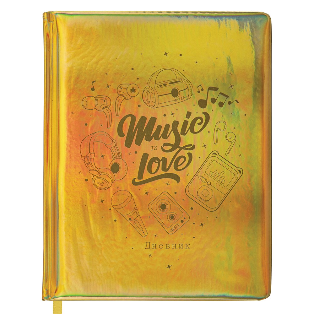 Дневник 1-11 класс 48 л., кожзам (твердая с поролоном), фольга, BRAUBERG HOLIDAY, "Музыка", 106914