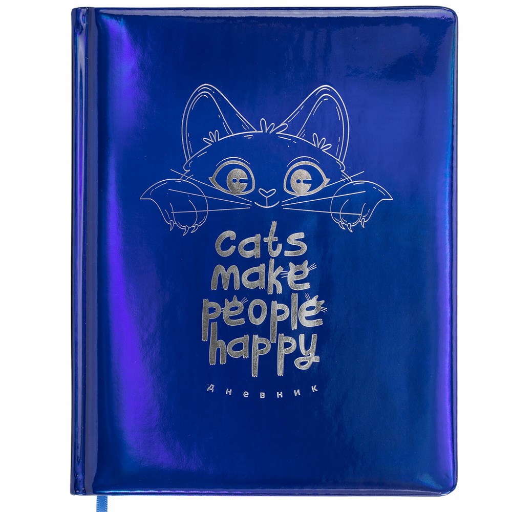 Дневник 1-11 класс 48 л., кожзам (твердая с поролоном), фольга, BRAUBERG HOLIDAY, "Веселый Кот", 106916