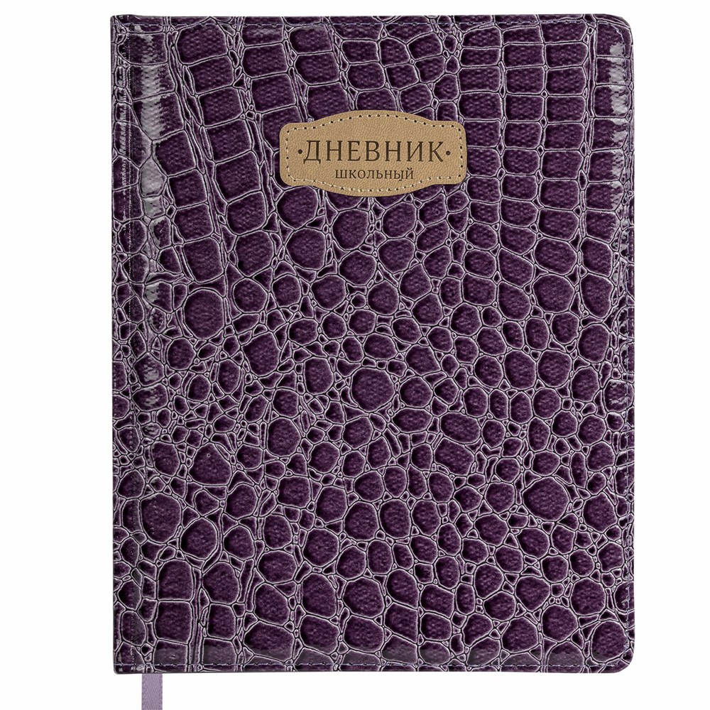 Дневник 1-11 класс 48 л., кожзам (твердая с поролоном), нашивка, BRAUBERG "CROCODILE", фиолетовый, 106211