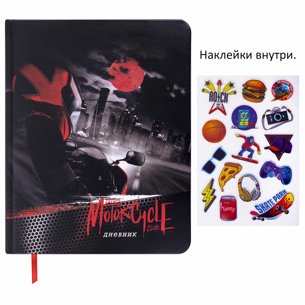 Дневник 1-11 класс 48 л., кожзам (твердая с поролоном), печать, наклейки, BRAUBERG, "Moto Club", 106192