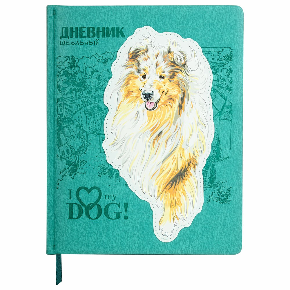 Дневник 1-11 класс 48 л., кожзам (твердая с поролоном), тиснение, аппликация, BRAUBERG, "Собачка", 106940