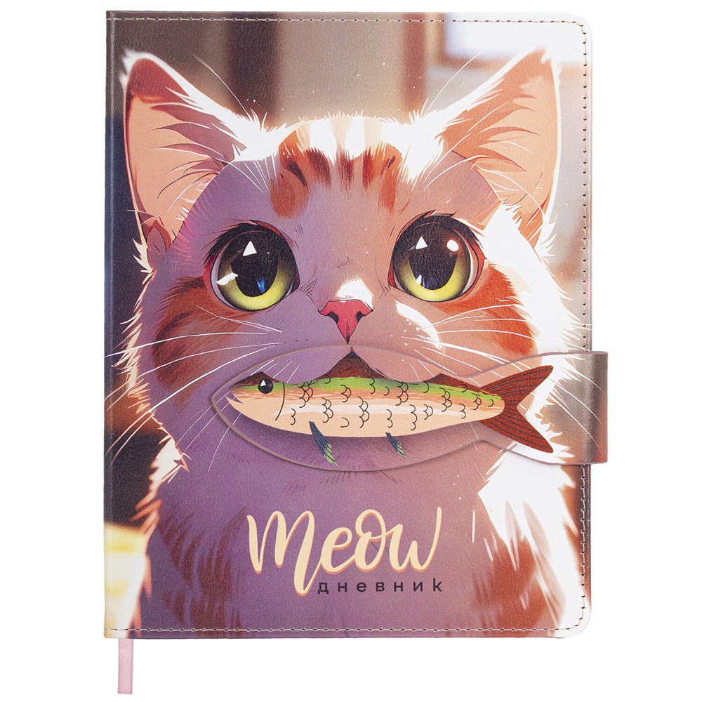 Дневник 1-11 класс 48 л., кожзам (твердая), застежка, BRAUBERG, "Котик с рыбкой", 107229