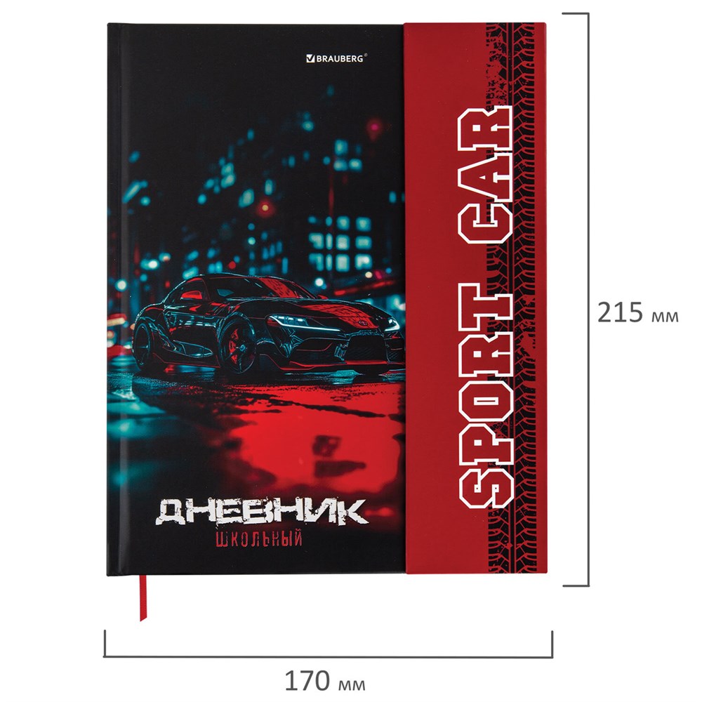 Дневник 1-11 класс 48 л., твердый, BRAUBERG, матовая ламинация, магнитный клапан, закладка-ляссе, с подсказом, "Авто", 107246