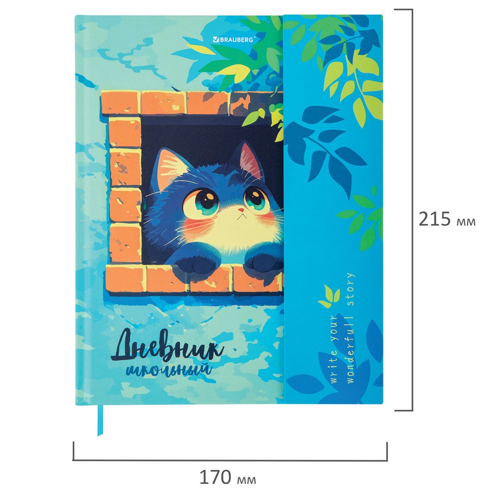 Дневник 1-11 класс 48 л., твердый, BRAUBERG, матовая ламинация, магнитный клапан, закладка-ляссе, с подсказом, "Котик", 107244