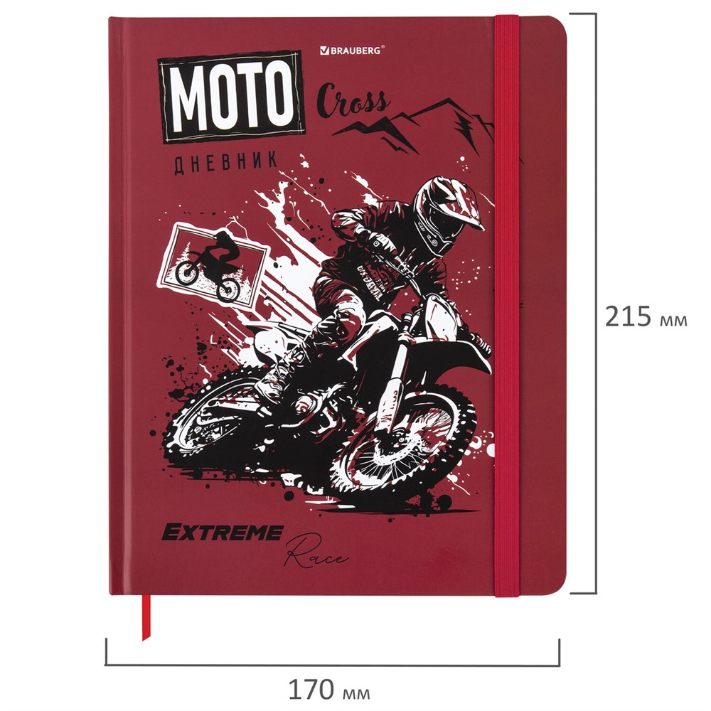 Дневник 1-11 класс 48 л., твердый, BRAUBERG, матовая ламинация, резинка, закладка-ляссе, с подсказом, "Мото", 107236