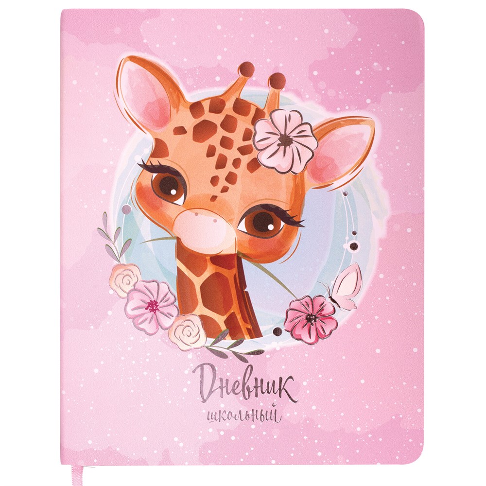 Дневник 1-4 класс 48 л., кожзам (гибкая), печать, фольга, ЮНЛАНДИЯ, "Милый Жираф", 106163