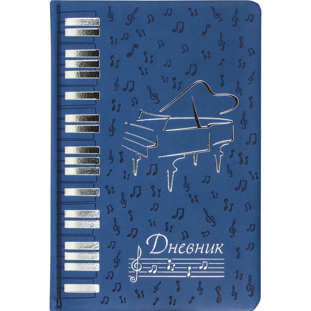 Дневник для музыкальной школы 140х210 мм, 48 л., обложка кожзам твердая, фольга, BRAUBERG, справочный материал, темно-синий, 105500