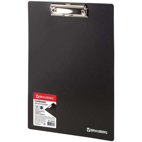 Доска-планшет BRAUBERG "Contract" с прижимом А4 (313х225 мм), пластик, 1,5 мм, ЧЕРНАЯ, 223491