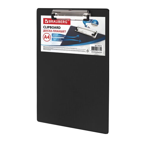Доска-планшет BRAUBERG "NUMBER ONE" с прижимом А4 (228х318 мм), картон/ПВХ, ЧЕРНАЯ, 232216