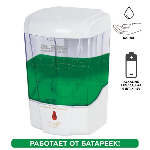 )Автоматический дозатор для жидкого мыла и гелевых антисептиков LAIMA PROFESSIONAL обеспечивает экономичный расход и повышенный уровень гигиены. Предназначен для офисов, предприятий, торговых центров. Исключает контакт рук с поверхностью дозатора.