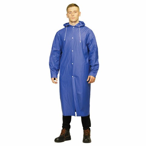 Дождевик плащ синий на кнопках многоразовый, прочный, винил, размер универсальный, 23319