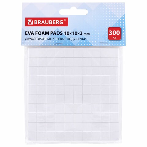 Двусторонние клеевые подушечки 10х10х2 мм, ВСПЕНЕННАЯ ОСНОВА, 300 шт., BRAUBERG, 662785