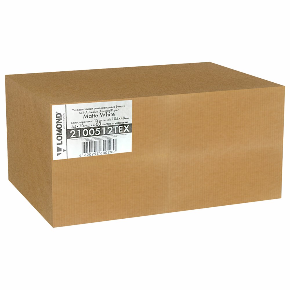Этикетка самоклеящаяся 105х48 мм, 12 этикеток, белая, 70 г/м2, 500 л., LOMOND, 2100512ТЕХ