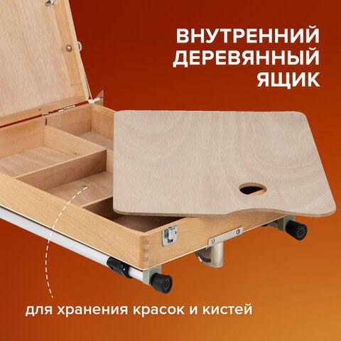 Этюдник из бука, 47х33х8,5 см, высота холста до 60 см, ножки алюминий 78 см, BRAUBERG ART, 192268