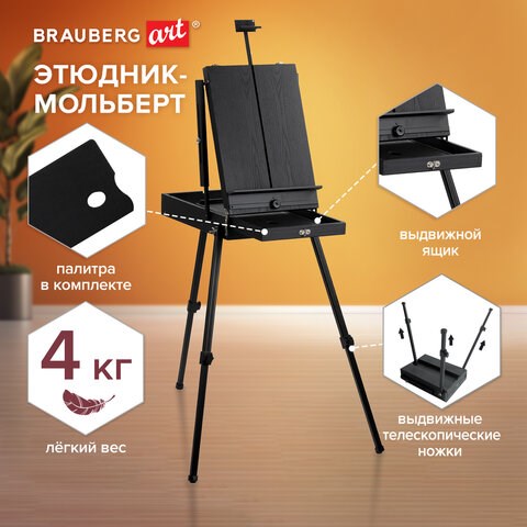 Этюдник-мольберт BRAUBERG ART PREMIERE, алюминиевые ножки, холст до 82 см, черный, 191755