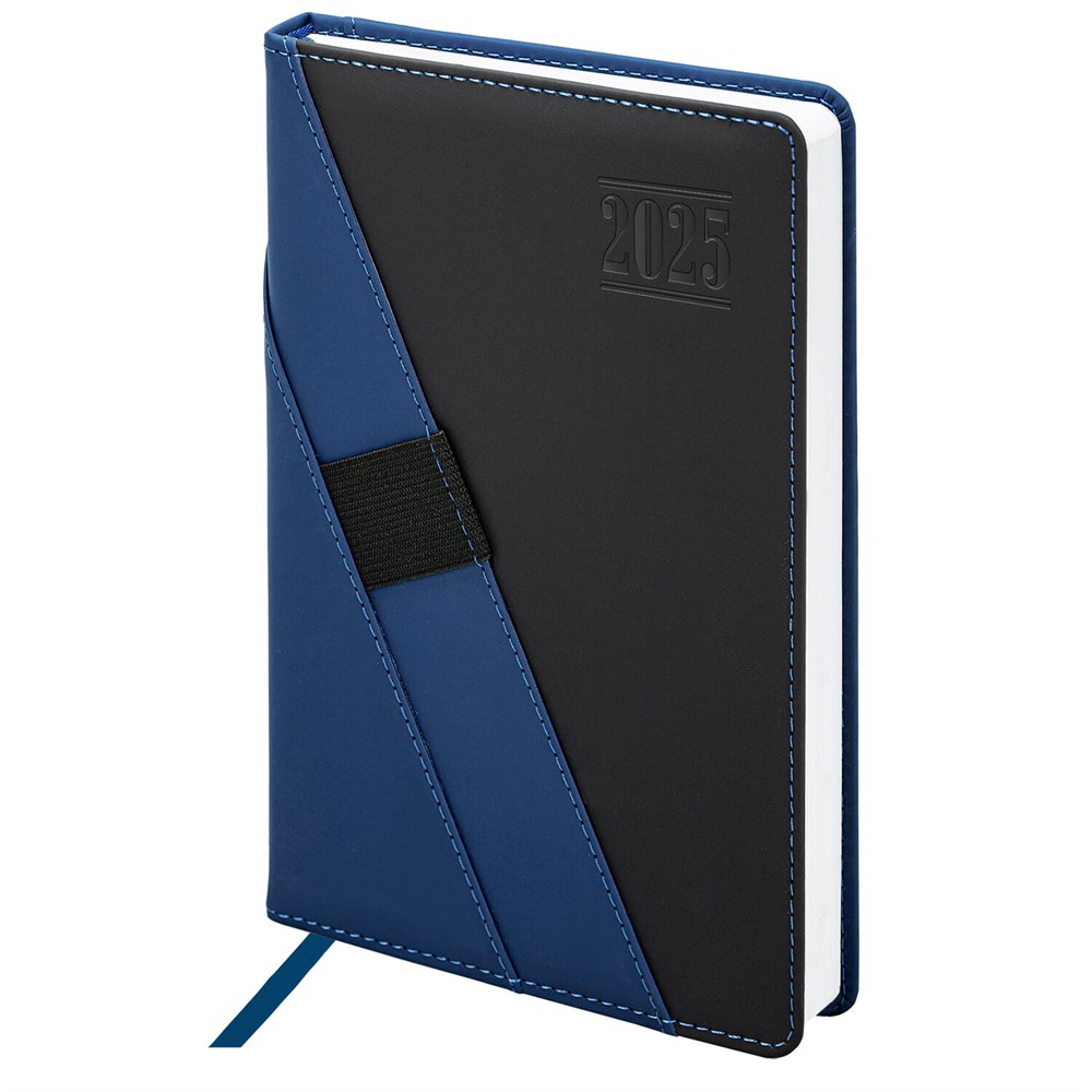 Выполнен в стильном сочетании синего и черного цветов. Обложка подходит для горячего тиснения. Дополнением является закладка-ляссе, с помощью которой при необходимости можно быстро открыть ежедневник на нужной странице, и держатель для ручки. Ежедневник снабжен справочным материалом. В конце имеются 4 страницы для записей и заметок.