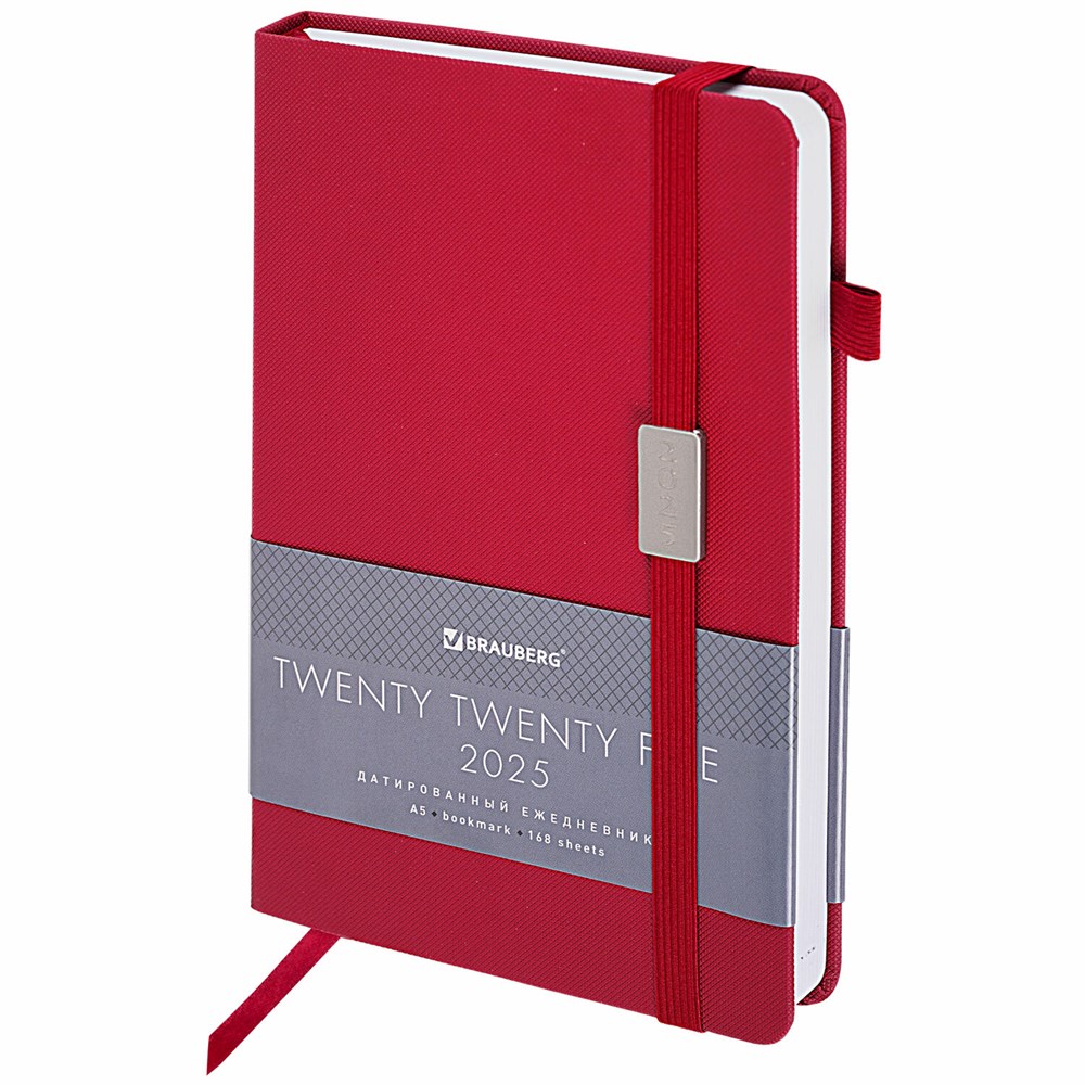 Ежедневник датированный 2025, А5, 138x213 мм, BRAUBERG "Control", под кожу, держатель для ручки, красный, 115848