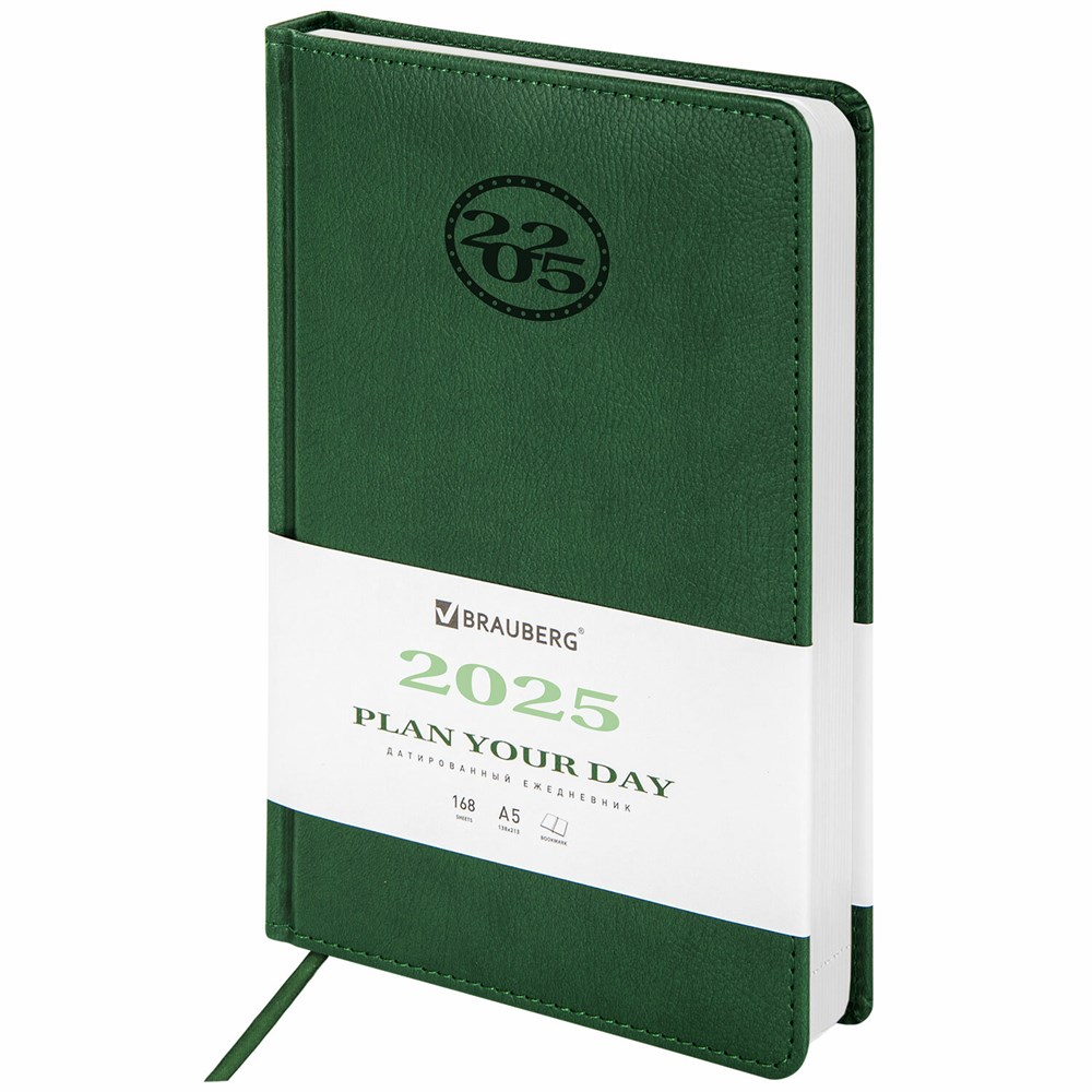 Ежедневник датированный 2025, А5, 138x213 мм, BRAUBERG "Favorite", под кожу, зеленый, 115763