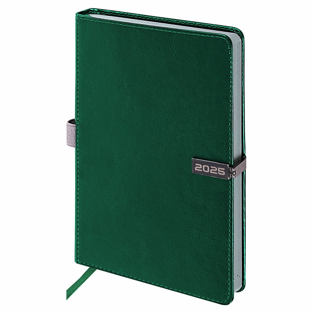 Ежедневник датированный 2025, А5, 138x213 мм, BRAUBERG "Inspiration", под кожу, цветной срез, темно-зеленый, 115904