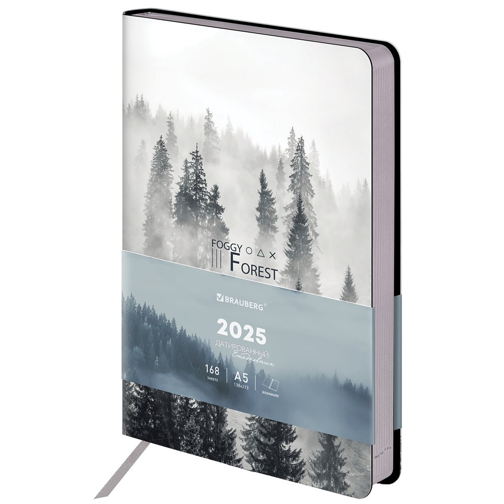 Ежедневник датированный 2025 А5 138x213 мм BRAUBERG "Vista", под кожу гибкий, "Туман", 115868
