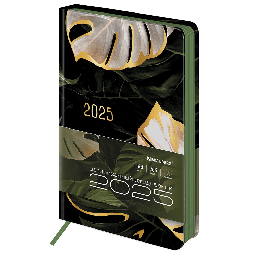 Ежедневник датированный 2025 А5 138x213 мм, BRAUBERG "Vista", под кожу твердый, "Листья", 115877