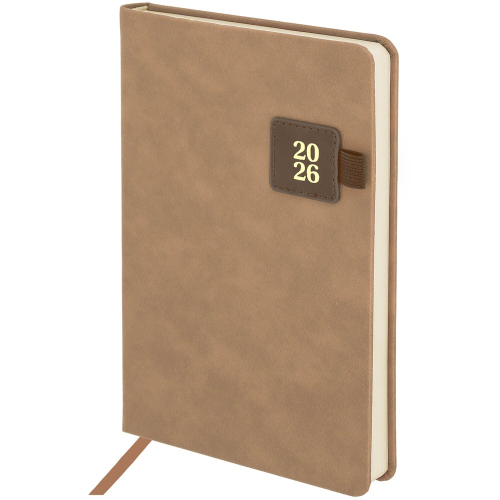 Ежедневник датированный 2026 А5 138х213 мм, BRAUBERG "Accent", под кожу, держатель, бежевый/коричневый, 117388