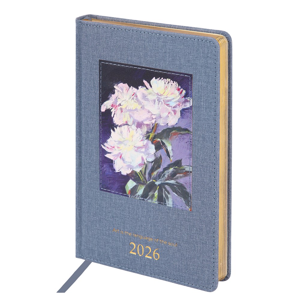 Ежедневник датированный 2026 А5 138х213 мм, BRAUBERG "ArtGallery", под кожу, нашивка, голубой, 117407