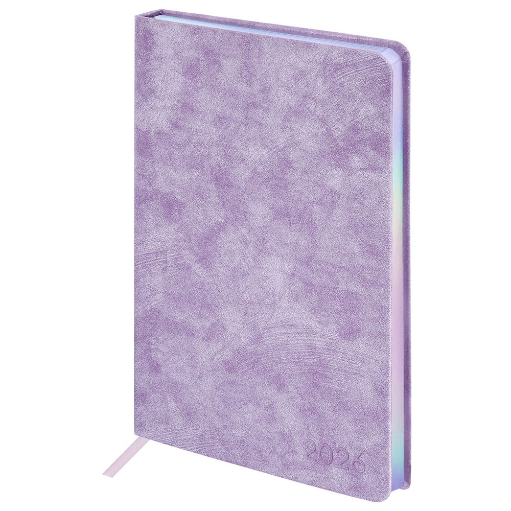 Ежедневник датированный 2026 А5 138х213 мм, BRAUBERG "Ice", под кожу, сиреневый, 117392