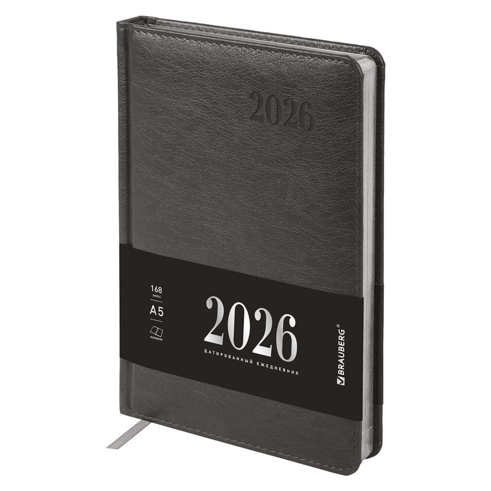 Ежедневник датированный 2026, А5, 138х213 мм, BRAUBERG "Impression", под кожу, серый, 117513