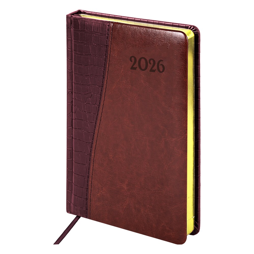 Ежедневник датированный 2026, А5, 138x213 мм, BRAUBERG "Cayman", под кожу, бордовый/коричневый, 117044