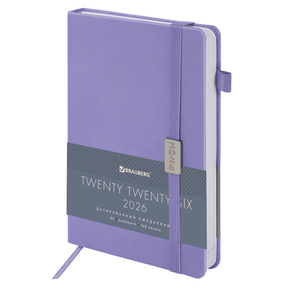 Ежедневник датированный 2026, А5, 138x213 мм, BRAUBERG "Control", под кожу, держатель для ручки, сиреневый, 117125