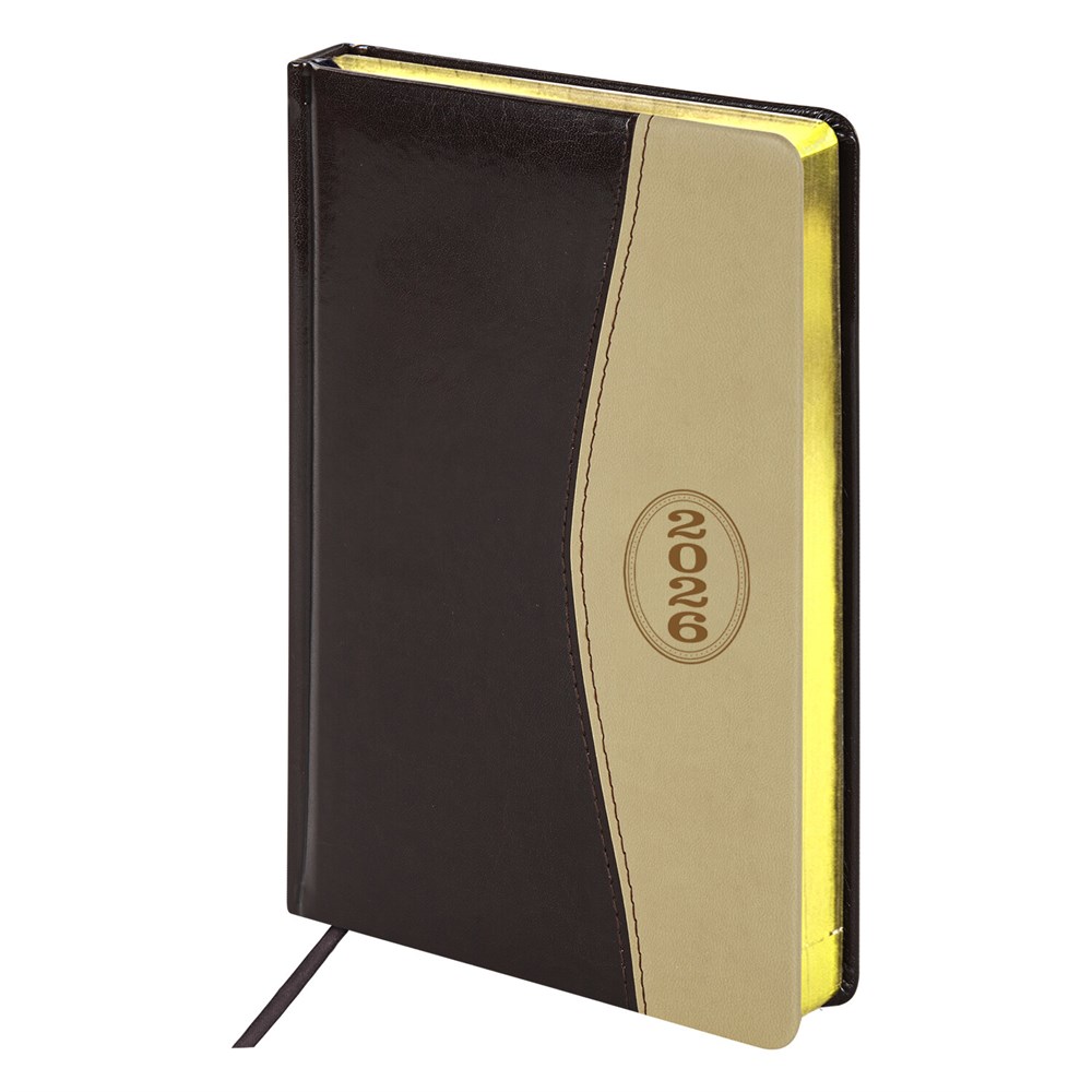 Ежедневник датированный 2026, А5, 138x213 мм, BRAUBERG "De Luxe", под кожу, коричневый/бежевый, 117053