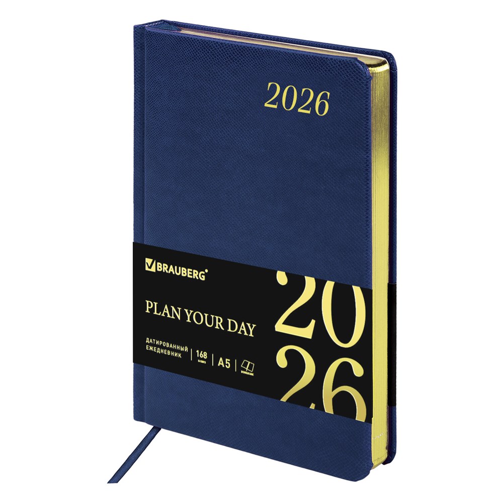 Ежедневник датированный 2026 А5 138x213 мм, BRAUBERG "Iguana", под кожу, синий, 117056