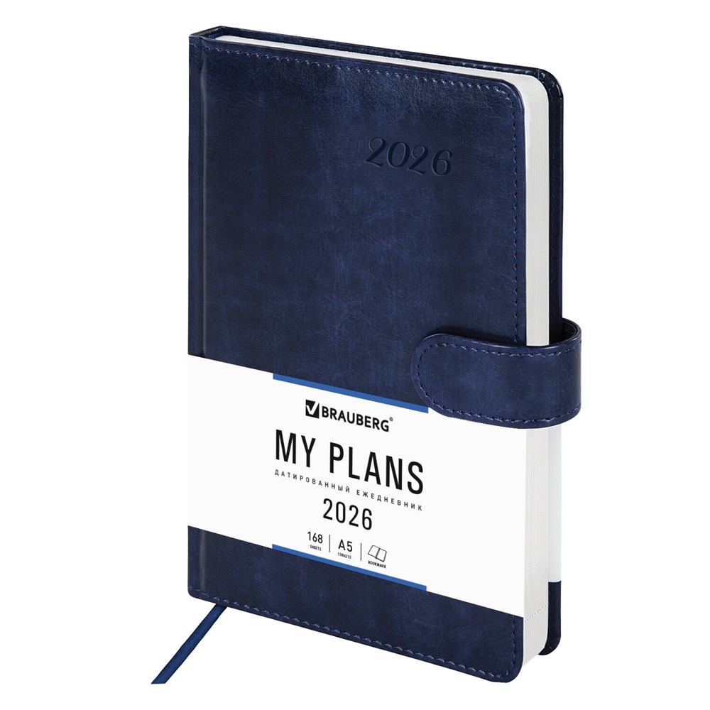 Ежедневник датированный 2026 А5 138x213 мм, BRAUBERG "Legend", под кожу, застежка, синий, 117067