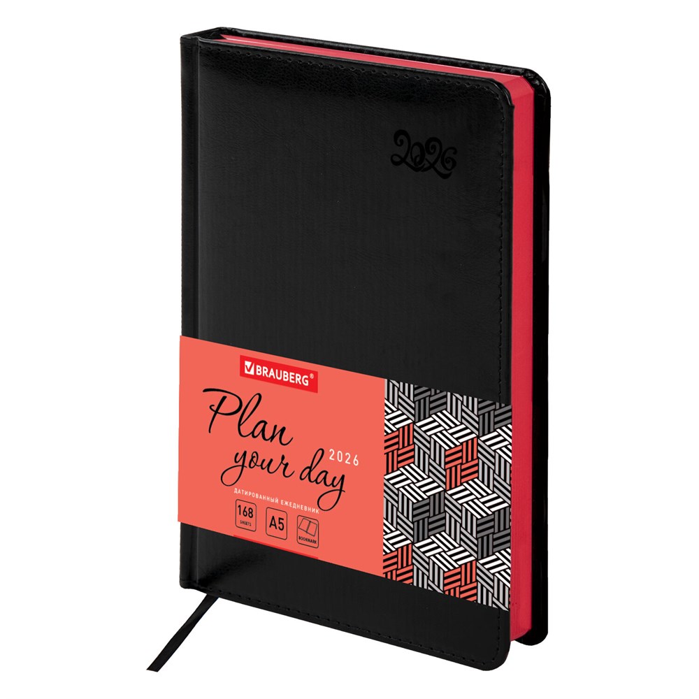 Ежедневник датированный 2026, А5, 138x213 мм, BRAUBERG "Rainbow", под кожу, черный, 117079