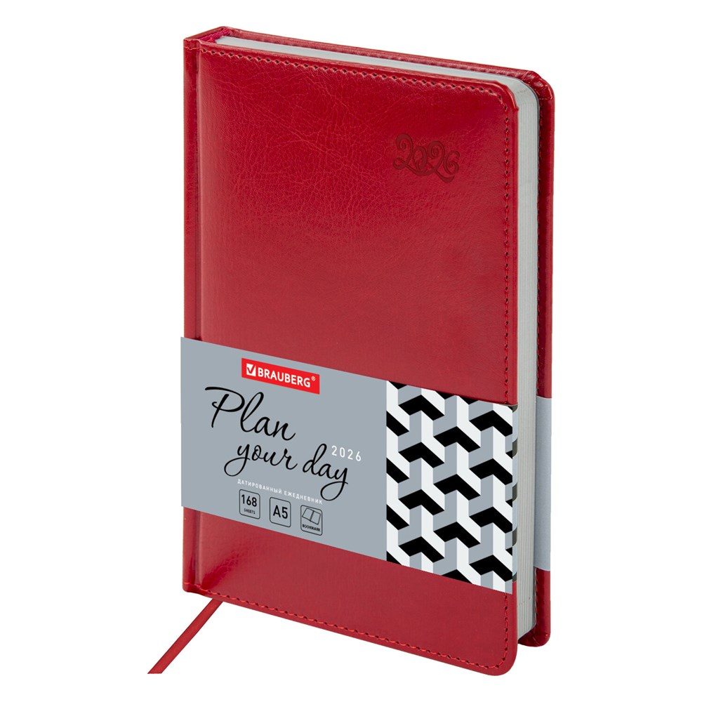 Ежедневник датированный 2026, А5, 138x213 мм, BRAUBERG "Rainbow", под кожу, красный, 117077