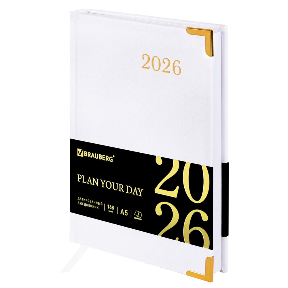 Ежедневник датированный 2026, А5, 138x213 мм, BRAUBERG "Senator", под кожу, белый, 117095