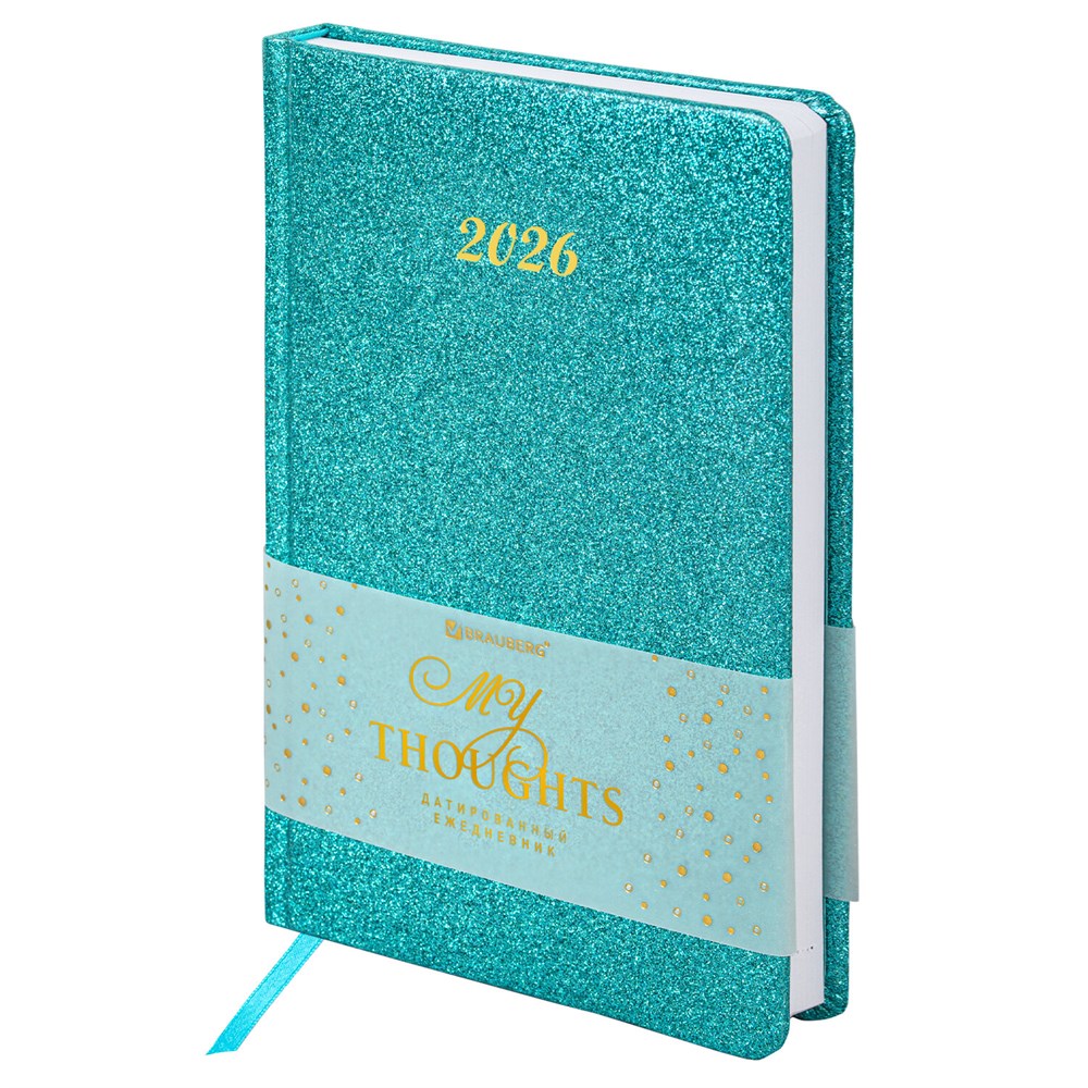 Ежедневник датированный 2026, А5, 138x213 мм, BRAUBERG "Sparkle", под кожу, блестки, бирюзовый, 117439