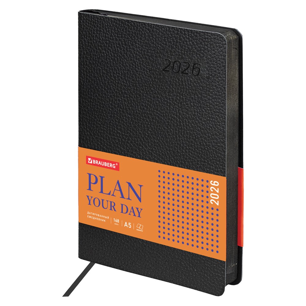 Ежедневник датированный 2026 А5 138x213 мм, BRAUBERG "Stylish", под кожу, гибкий, черный, 117097