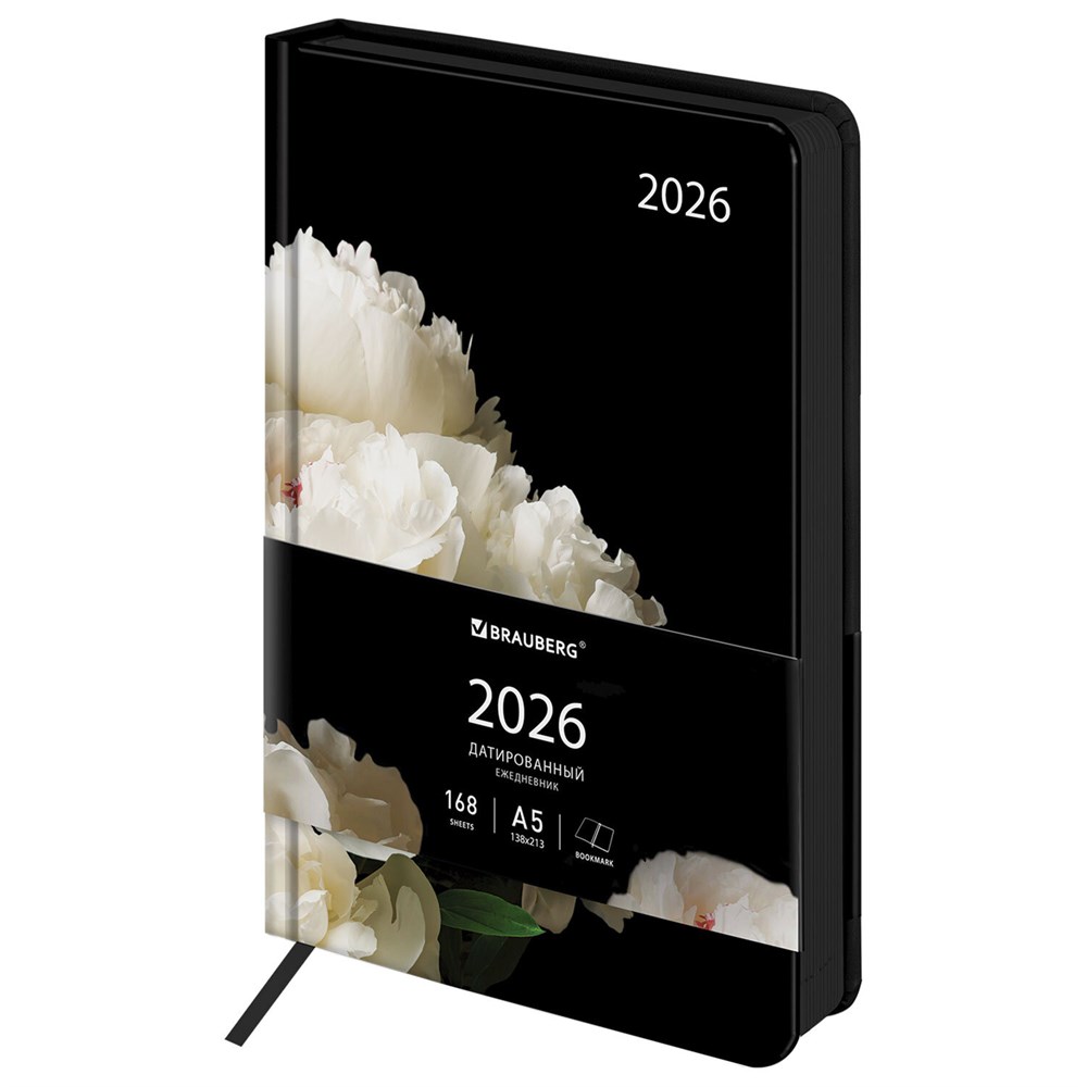 Ежедневник датированный 2026 А5 138x213 мм, BRAUBERG "Vista", под кожу, твердый, "Flowers", 117454