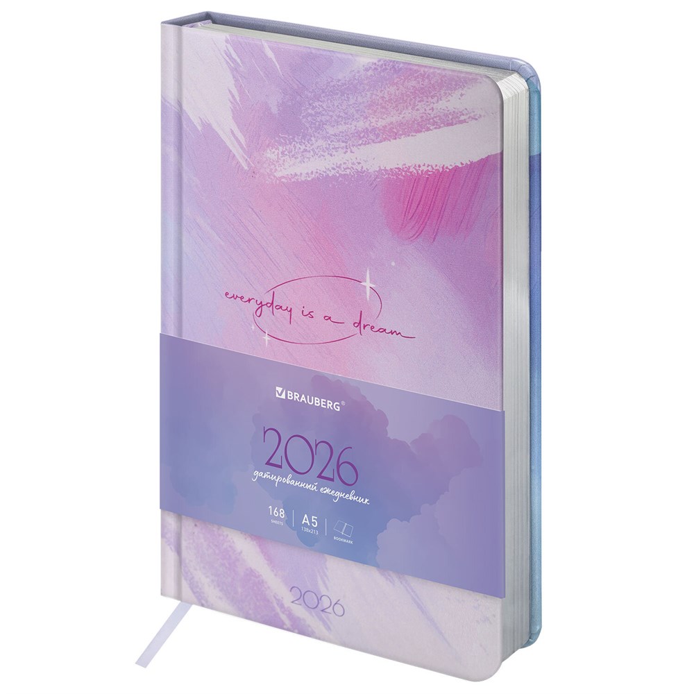 Ежедневник датированный 2026 А5 138x213 мм, BRAUBERG "Vista", под кожу твердый, "Pastel", 117458