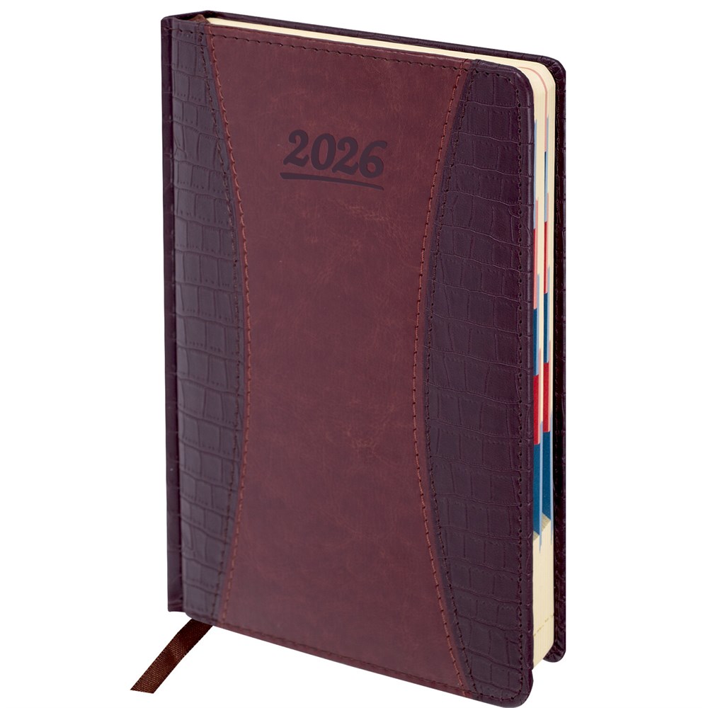 Датированный ежедневник серии "Combi Contract" GALANT отличается классическим дизайном обложки. Материал с легкой рельефной фактурой под кожу сочетается с имитацией кожи крокодила. Для удобства использования внутренний блок имеет вырубку по месяцам.Внутренний блок включает 168 листов тонированной бумаги плотностью 70 г/м2. Каждая страничка имеет перфорированный угол. Благодаря стандартному формату А5 (148х218 мм) ежедневник удобно использовать как в офисе, так и на выездных деловых встречах. Твердая обложка коричневого цвета состоит из двух материалов и стилизована под кожу крокодила со вставкой из материала под гладкую кожу. Материал обложки подходит для горячего тиснения.