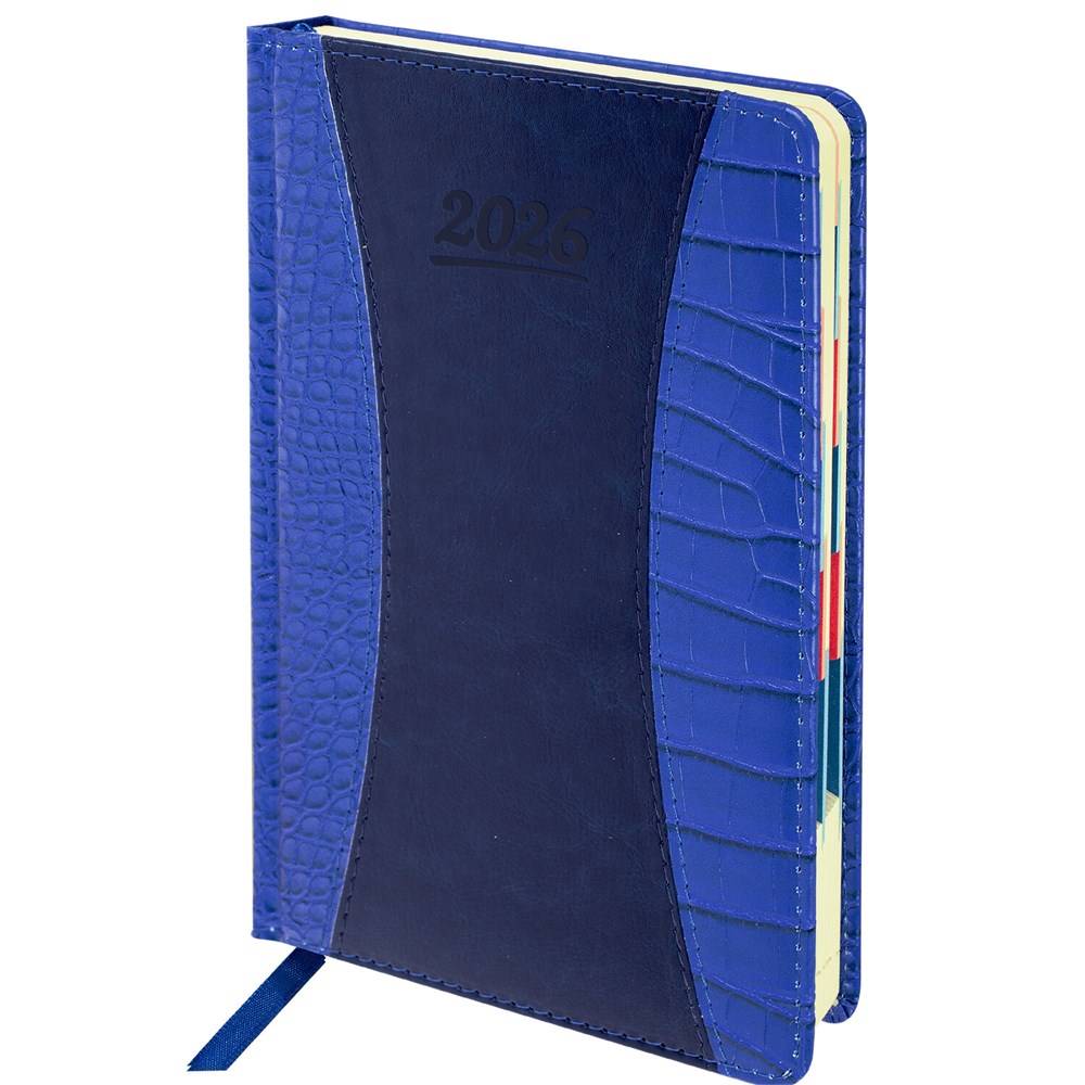 Датированный ежедневник серии "Combi Contract" GALANT отличается классическим дизайном обложки. Материал с легкой рельефной фактурой под кожу сочетается с имитацией кожи крокодила. Для удобства использования внутренний блок имеет вырубку по месяцам.Внутренний блок включает 168 листов тонированной бумаги плотностью 70 г/м2. Каждая страничка имеет перфорированный угол. Благодаря стандартному формату А5 (148х218 мм) ежедневник удобно использовать как в офисе, так и на выездных деловых встречах. Твердая обложка темно-синего цвета состоит из двух материалов и стилизована под кожу крокодила с вставкой из материала под гладкую кожу. Материал обложки подходит для горячего тиснения.