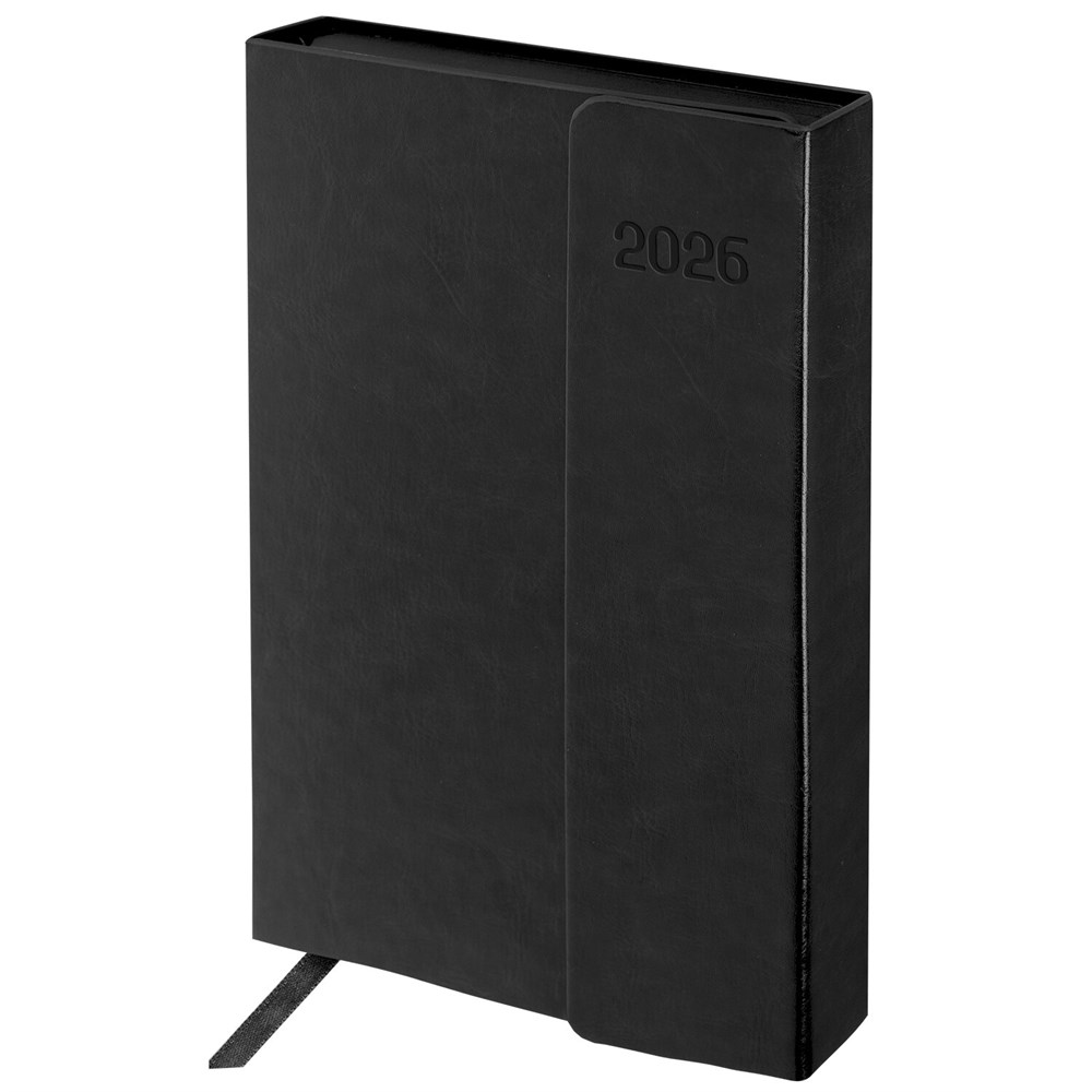 Датированный ежедневник "Magnetic" GALANT – надежный спутник делового и стильного человека.Внутренний блок включает 168 листов тонированной бумаги плотностью 70 г/м2. Каждая страничка имеет перфорированный угол. Благодаря стандартному формату А5 (148х218 мм) ежедневник удобно использовать как в офисе, так и на выездных деловых встречах. Интегральная обложка стилизована под гладкую кожу черного цвета, фиксируется магнитным клапаном, поэтому ежедневник не откроется в сумке или портфеле и страницы не помнутся. Подходит для горячего тиснения. Срез и форзац ежедневника окрашены в цвет обложки, что придает ему особый шарм.