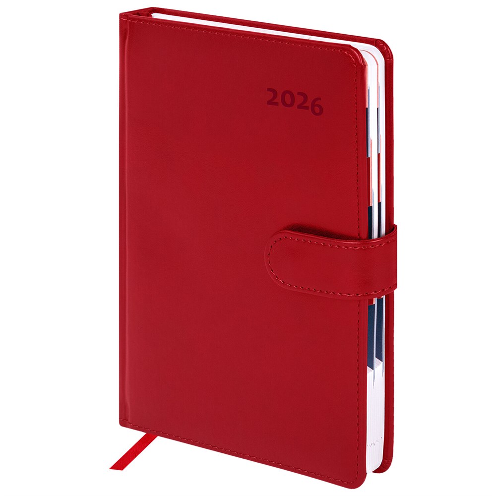 Датированный ежедневник серии "Ritter" от GALANT – надежный спутник делового человека.Внутренний блок включает 168 листов белой бумаги плотностью 70 г/м2. Каждая страничка имеет перфорированный угол. Благодаря стандартному формату А5 (148х218 мм) ежедневник удобно использовать как в офисе, так и на выездных деловых встречах. Твердая обложка красного цвета прошита по периметру и стилизована под гладкую кожу. Обложка фиксируется магнитной застежкой, поэтому ежедневник не откроется в сумке или портфеле и страницы не помнутся. Материал обложки подходит для горячего тиснения.