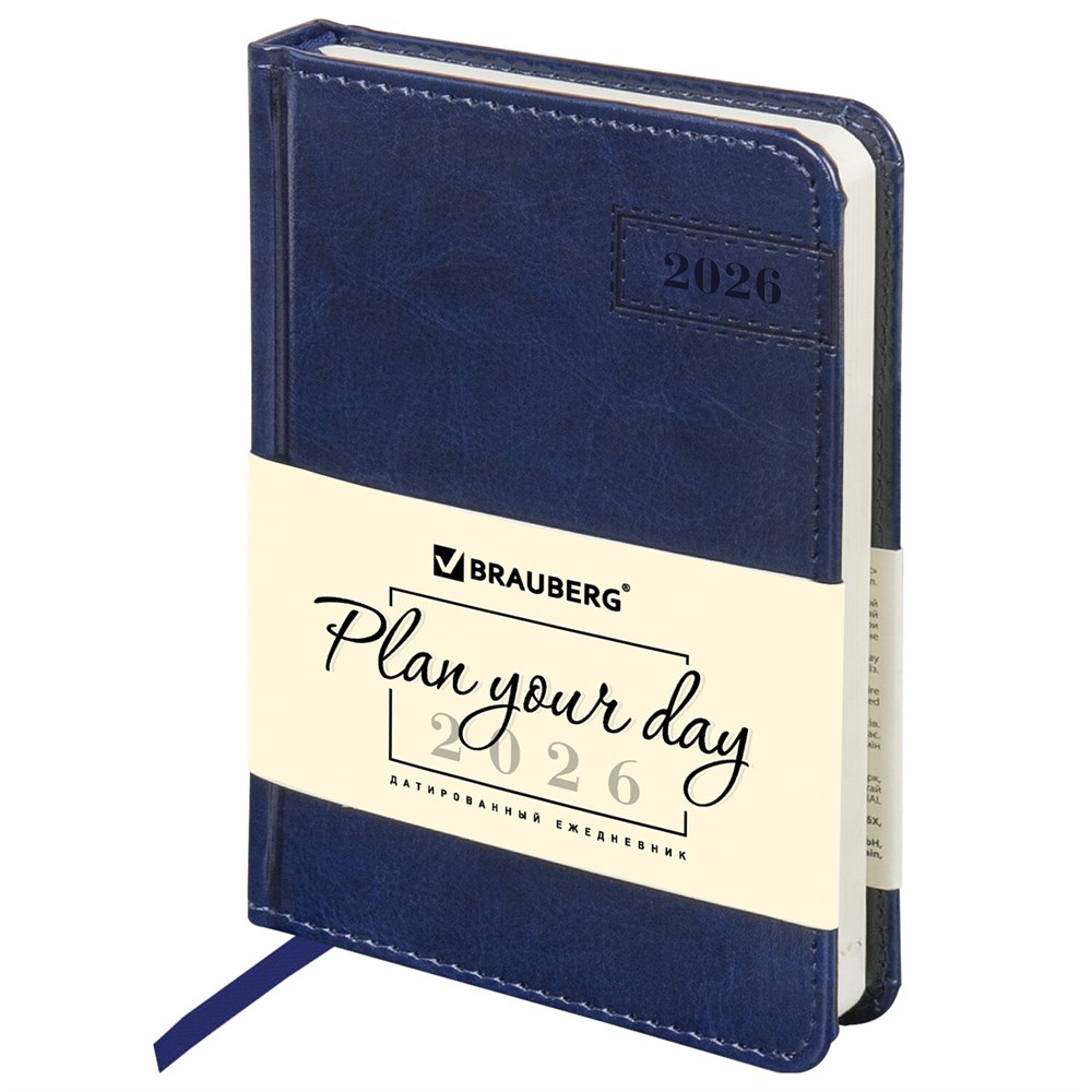 Ежедневник датированный 2026, МАЛЫЙ ФОРМАТ 100х150 мм, А6, BRAUBERG "Imperial", под кожу, синий, 117255