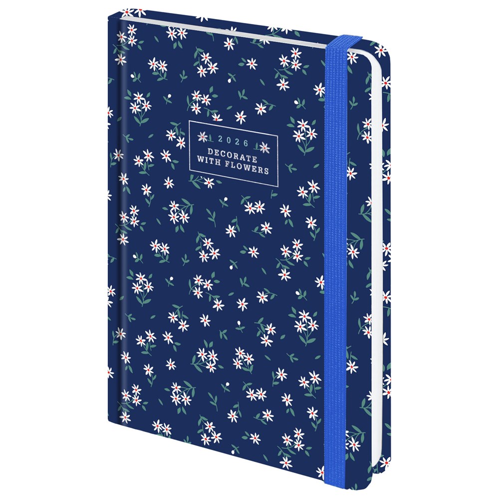 Ежедневник датированный 2026 с резинкой 145х203 мм, А5, BRAUBERG, твердый, фольга, "Ромашки", 117346