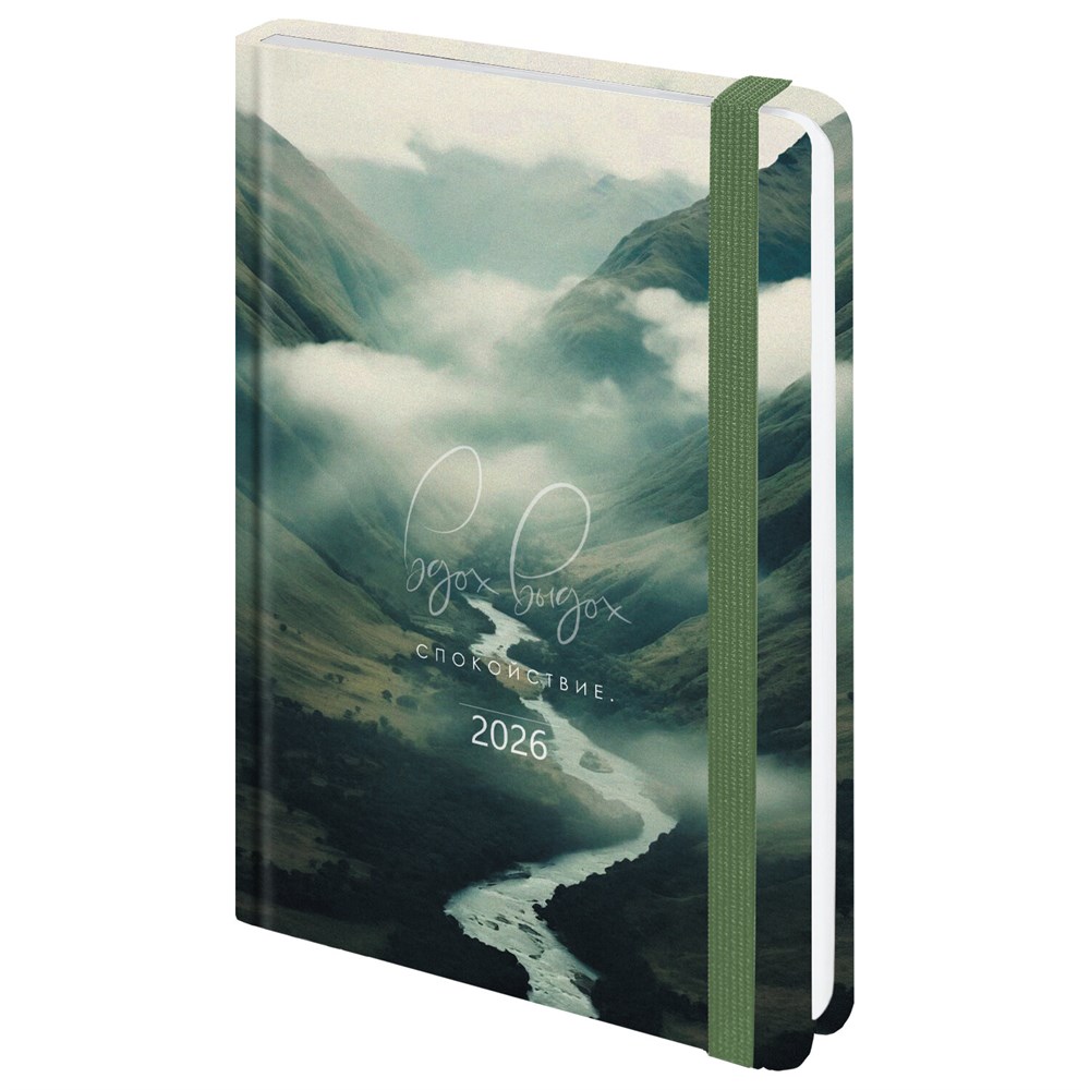 Ежедневник датированный 2026 с резинкой 145х203 мм, А5, BRAUBERG, твердый, "Спокойствие", 117343