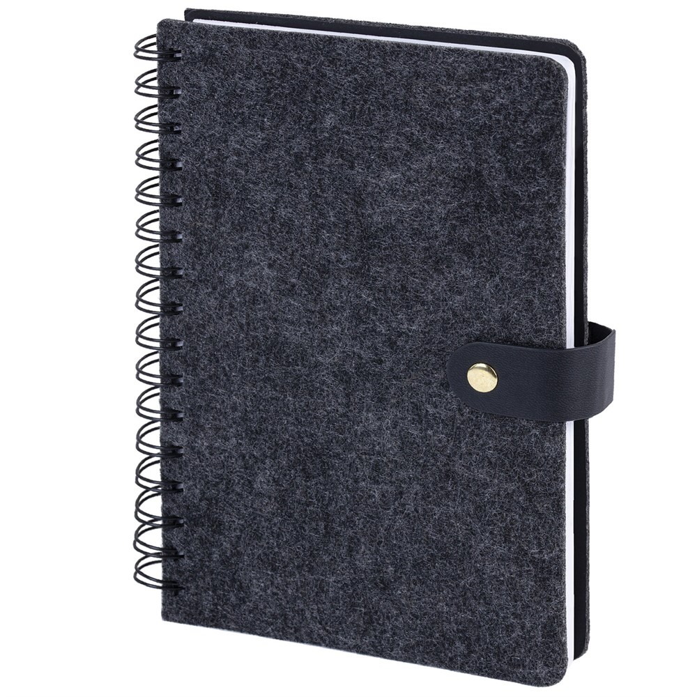 Ежедневник недатированный, А5, 135х210 мм, BRAUBERG "Felt", на гребне, войлок, застежка на кнопке, 160 л., черный, 117132